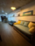 . Sala ampla com sofá-cama e TV smart 55' comando de voz, Netflix, e TV a cabo Sky.